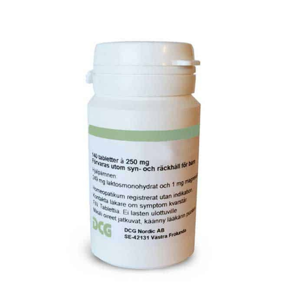 - Tabletterna har laktos som bärare av det homeopatiska ämnet, vilket garanterar en jämn och konsekvent distribution av den aktiva ingrediensen.