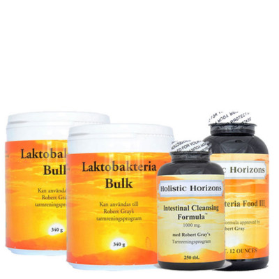 Programmet består av framför allt två produkter ett pulver och en tablett där tabletten löser upp gamla avlagringar och pulvret hjälper till att föra ut dem. Efter programmets gång kan du använda Laktobakteria Food III för att hålla tarmfloran intakt och kraftfull.