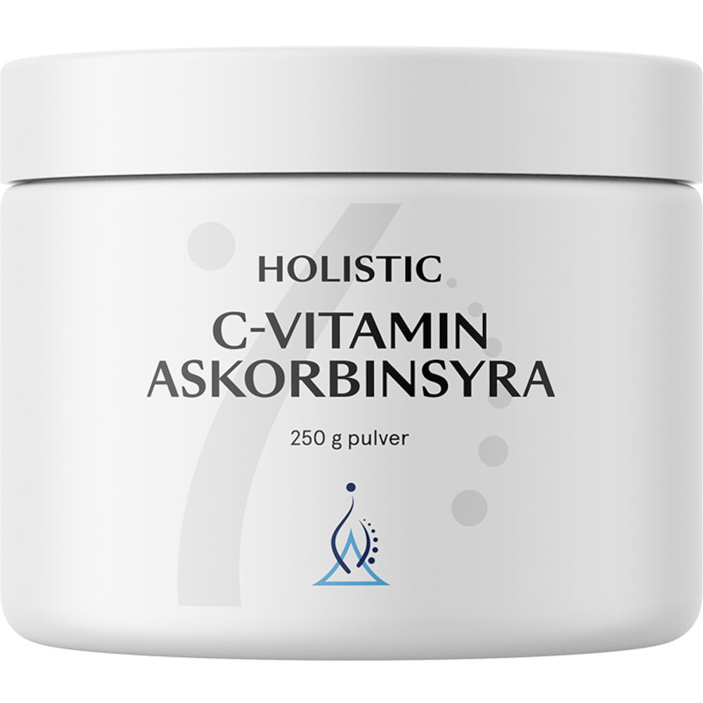 Holistic C-vitamin Askorbinsyra innehåller ren askorbinsyra i pulverform.