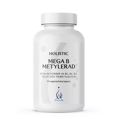 Holistic Mega B Metylerad innehåller samtliga former av B-vitaminer varav särskilt utvalda former av B6, B12 och folat. Metylering är en biokemisk process som har stor betydelse för kroppen och som pågår oavbrutet i varje cell i våra kroppar, från embryostadiet tills vi dör. Metylering påverkar avgiftningen av till exempel tungmetaller och även omvandlingen av homocystein till aminosyran metionin. Metyleringsprocessen är även viktigt för att bilda glutation, en av kroppens viktiga antioxidanter.