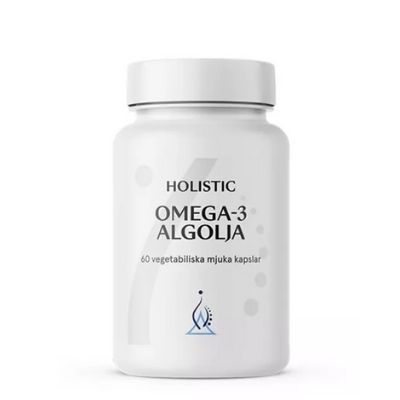 Holistic Omega-3 Algolja är en vegansk källa till omega-3-fettsyrorna EPA och DHA. Oljan utvinns från 100 % hållbar odling av mikroalgen Schizochytrium sp. Algoljan är fri från fisk och därmed fri från de miljögifter som fisk kan innehålla och bidrar inte heller till utfiskning av haven. Omega-3 Algolja är särskilt rik på DHA som är viktig för hjärnan, mental hälsa, koncentrationssvårigheter, dyslexi och för ögat.