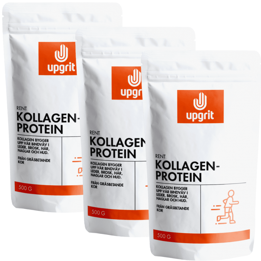 Upgrit kollagenprotein är av hög kvalitet och kommer från gräsbetande kor i Brasilien. Kollagen bygger upp vår bindväv, leder, brosk, hår, naglar och hud.