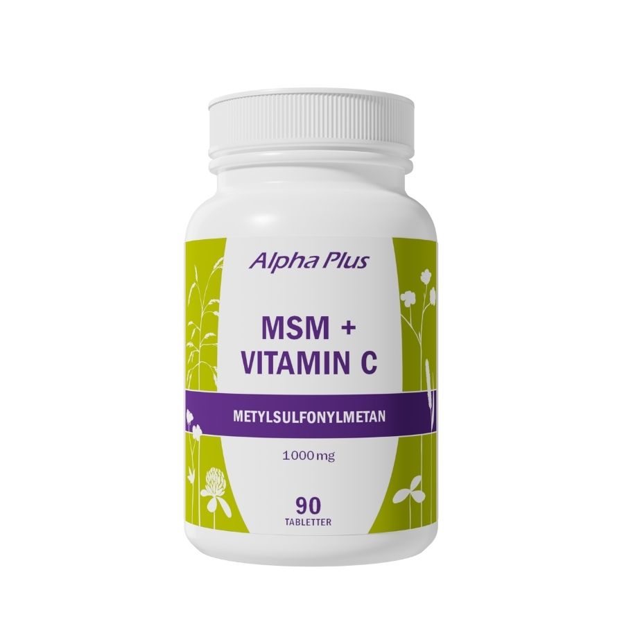 MSM + Vitamin C är ett bra kosttillskott för dig som vill öka ditt intag av MSM. Svavel finns i vår naturliga kost, men förstörs tyvärr lätt vid uppvärmning, bearbetning eller under förvaring. Med endast 3 tabletter om dagen får du i dig en stor mängd MSM och vitamin C som kan hjälpa dig till stärkta leder, hår, naglar, hud och muskler.