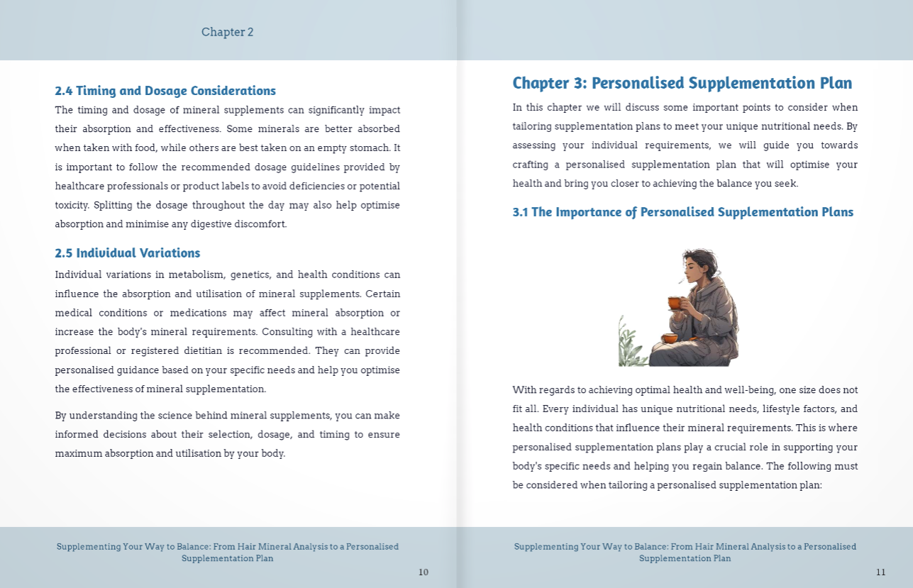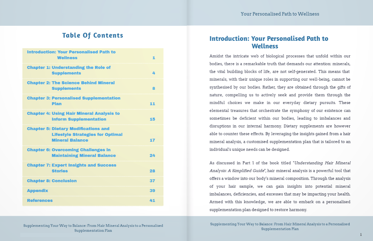Explore 'Supplementing Your Way to Balance: From Hair Mineral Analysis to a Personalised Supplementation Plan.' This impactful yet simplified guide uncovers personalised nutrition strategies. It also highlights dietary modifications and lifestyle strategies that can help you to achieve optimal mineral balance. Do not miss this essential resource bridging the gap between understanding your unique needs and crafting a personalised wellness journey.