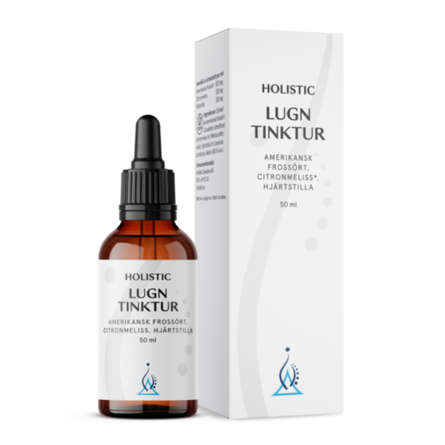 Holistic Lugn tinktur innehåller amerikansk frossört, citronmeliss och hjärtstilla. Citronmeliss kan bidra till normal avslappning. Hjärtstilla kan bidra till normal funktion av nervsystemet.
